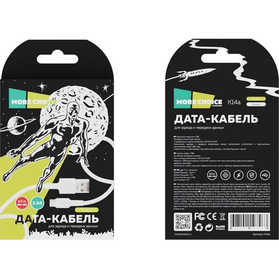 Кабель MORE CHOICE (4627151197463) K14a USB (m)-Type-C (m) 2.0м белый