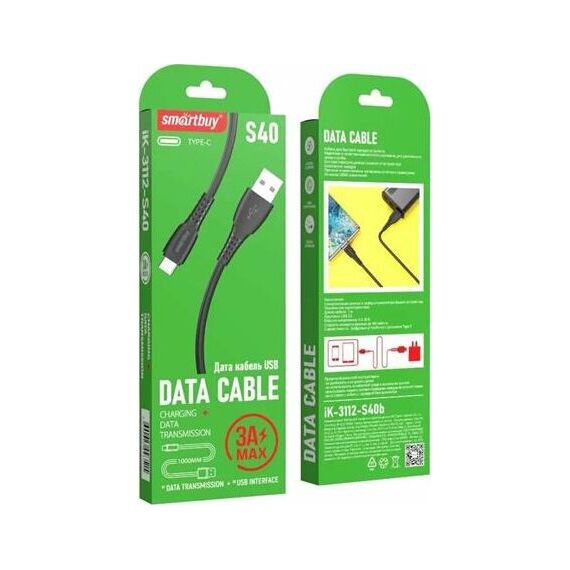Кабель SMARTBUY (iK-3112-S40b) S40 Type C черный. 1 м