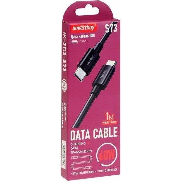 Кабель SMARTBUY (iK-3112-S73b) S73 Type C черный, 6А, 60 вт, 1 м