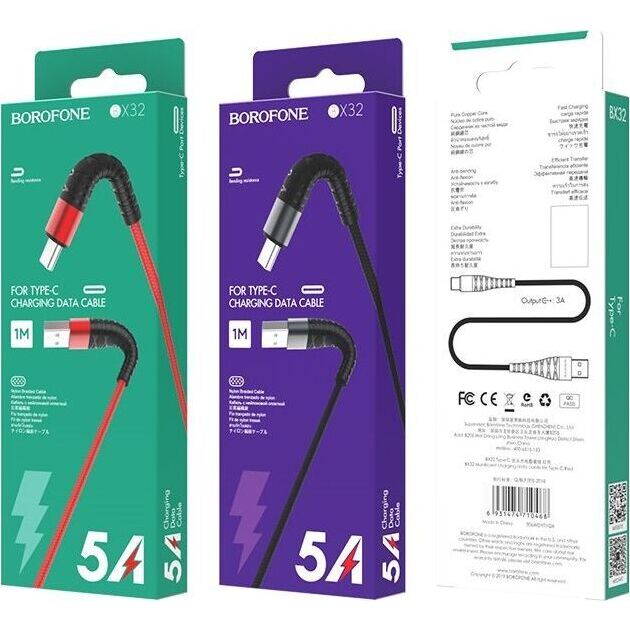 Кабель Type-C BOROFONE (6931474710451) BX32 USB-Type-C 5A 1M - черный