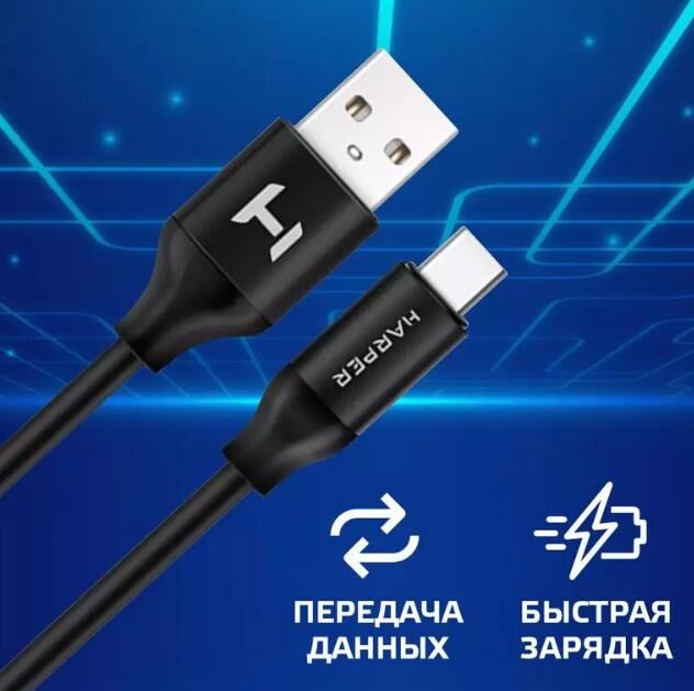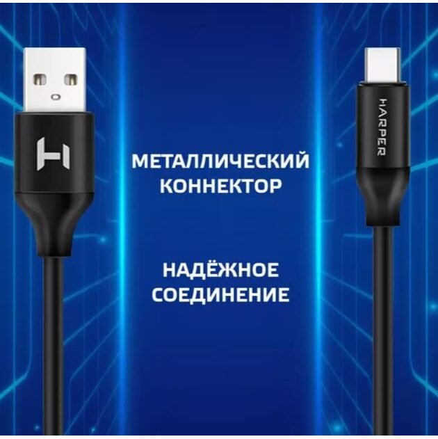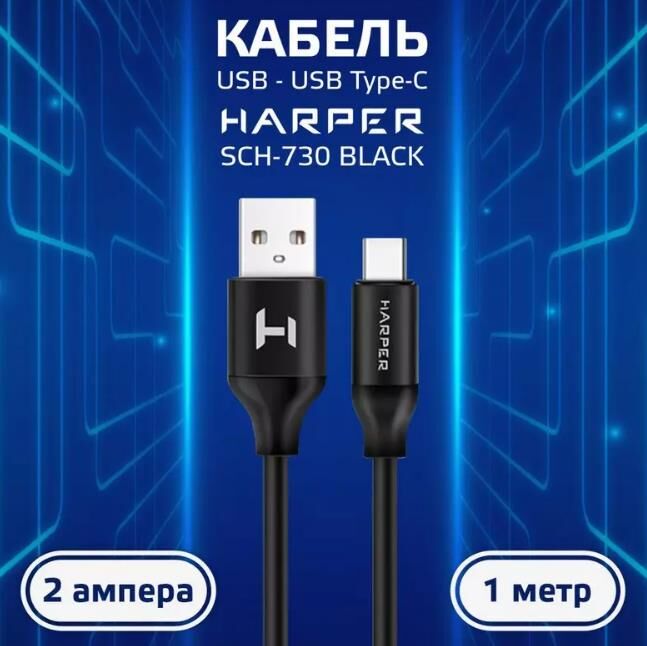 USB кабель HARPER SCH-730 (USB TYPE C, 1м, оплетка силикон) черный