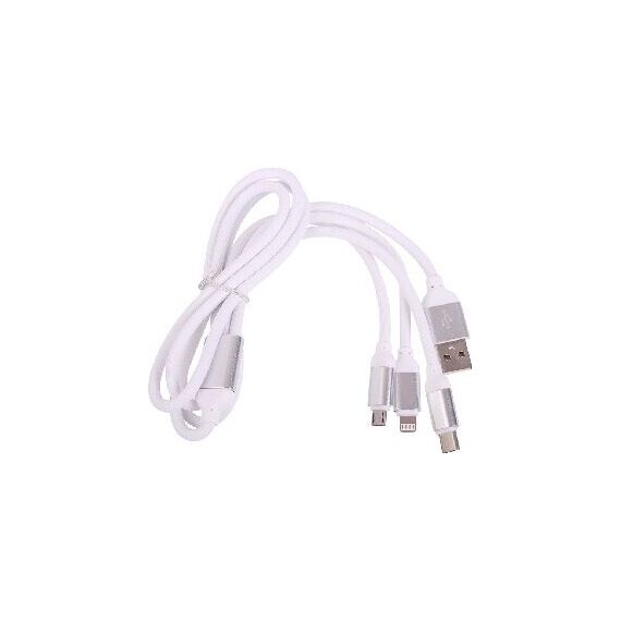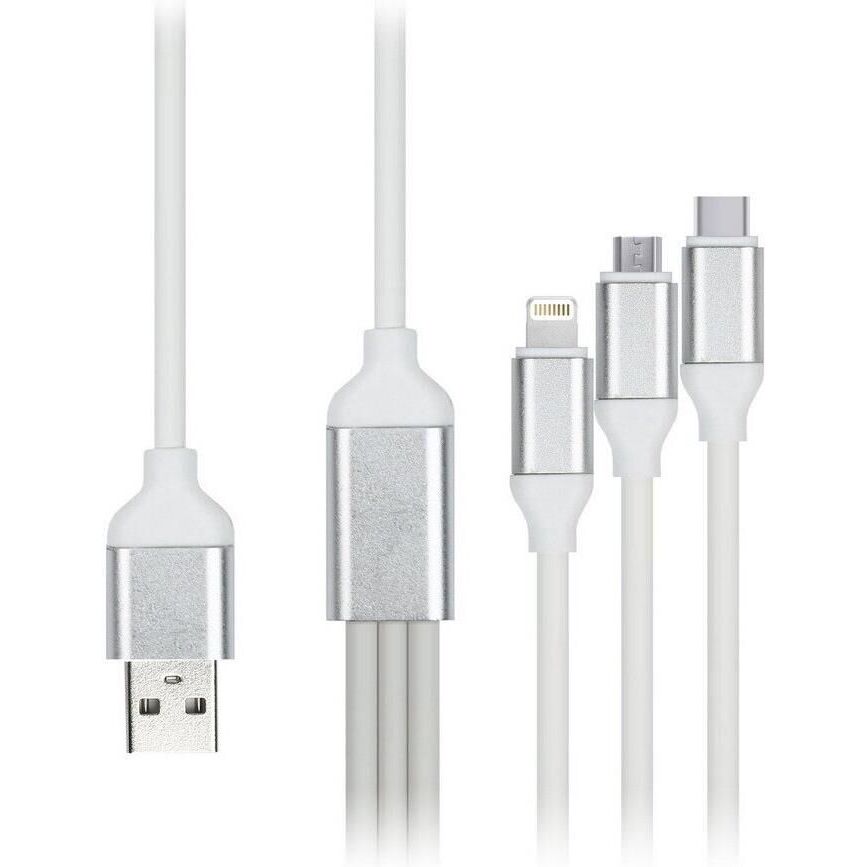 USB кабель SMARTBUY (iK-312 white) 3 в 1 MICROUSB+TYPE-C+8 PIN 1 м