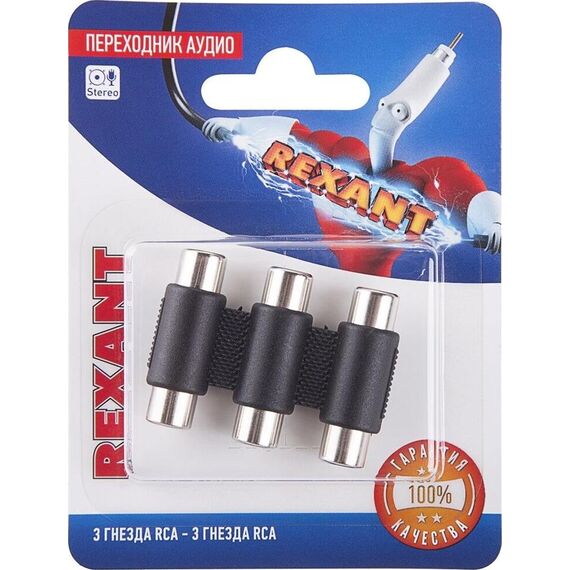 Переходник REXANT (14-0434) Переходник 3 гнезда RCA - 3 гнезда RCA "тринокль" (50)