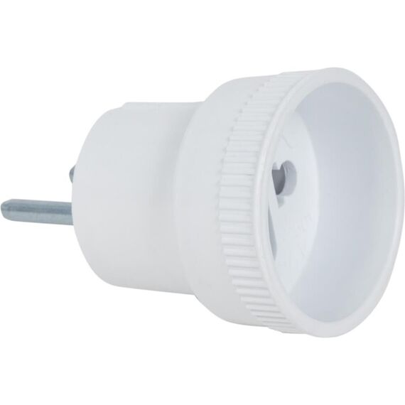 Переходник с евро-вилки на РФ - вилку Тех параметры: Макс нагрузка 1300 Вт Сила тока 6 А. Корпус из высококачественного ударопрочного пластика IP-20 Степень защиты (использовать только в помещениях)