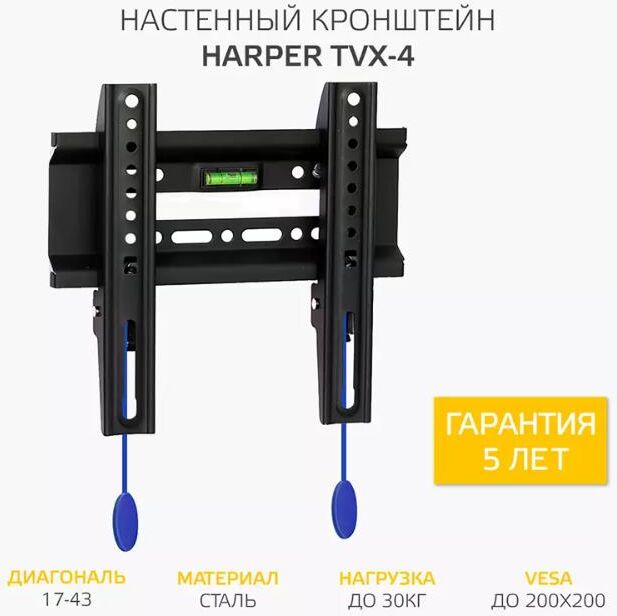Назначение: для LCD- и LED-телевизоров. Совместимость с диагональю ТВ: 17, 24, 32, 40, 42, 43. Тип кронштейна: фиксированный. Совместимость: поддерживает ТВ с диагональю 17-43. Максимальный вес ТВ: 30 кг. Крепление стандарта Vesa: до 200х200. Типы VESA: 100x100, 100x200, 200x200, 75x75. Угол наклона: 0°. Материал корпуса: сталь. Минимальное расстояние от стены: 30 мм. Максимальное расстояние от стены: 30 мм.