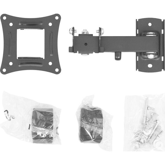 Тип кронштейна Наклонно-поворотный. Крепежные отверстия (VESA) 75x75 - 100x100. Мин. диагональ экрана (дюймы) 15. Макс. Диагональ экрана (дюймы) 30. Максимальная нагрузка, (кг.) 15. Угол наклона (°) +5°/-15. Угол повотора (°) 360. Расстояние от стены (мм.) 59-183. Цвет кронштейна Черный. Комплектация Кронштейн, набор крепежа, инструкция.