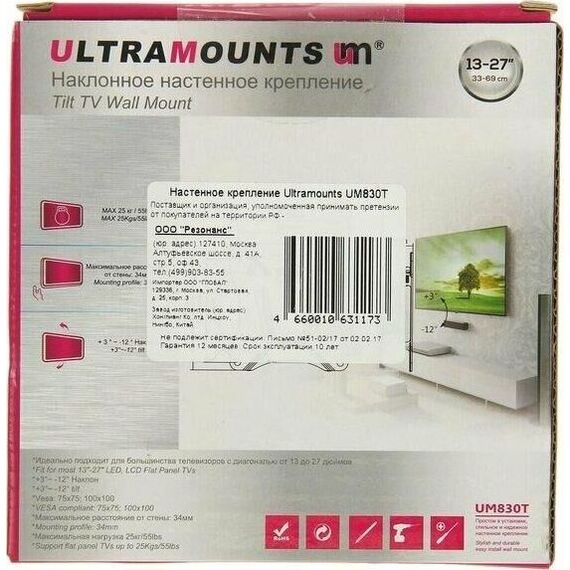 Кронштейн ULTRAMOUNTS UM830T для 13-27" черный