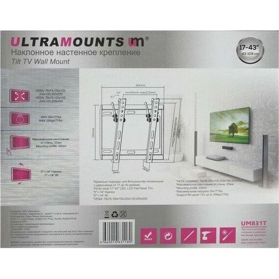 Кронштейн ULTRAMOUNTS UM831T для 17-43" черный