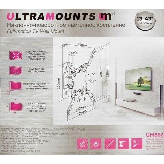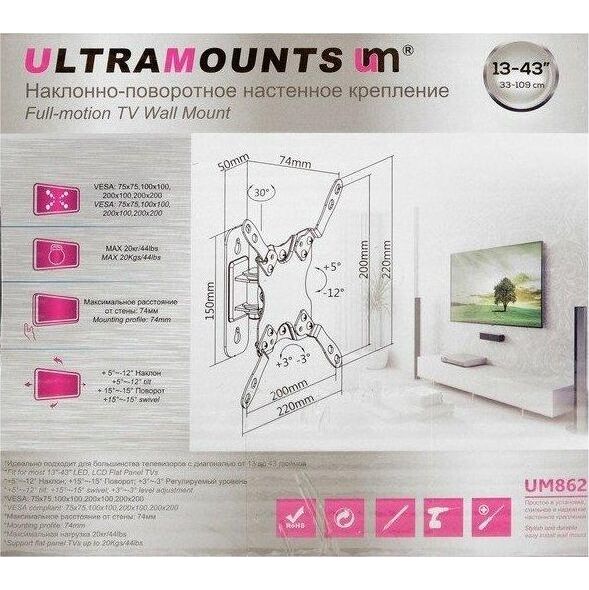 Кронштейн ULTRAMOUNTS UM862 для 13-43" черный