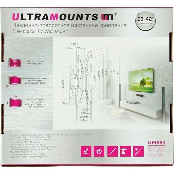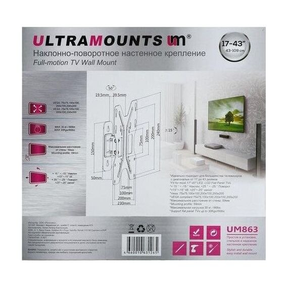 Кронштейн ULTRAMOUNTS UM863 для 17-43" черный
