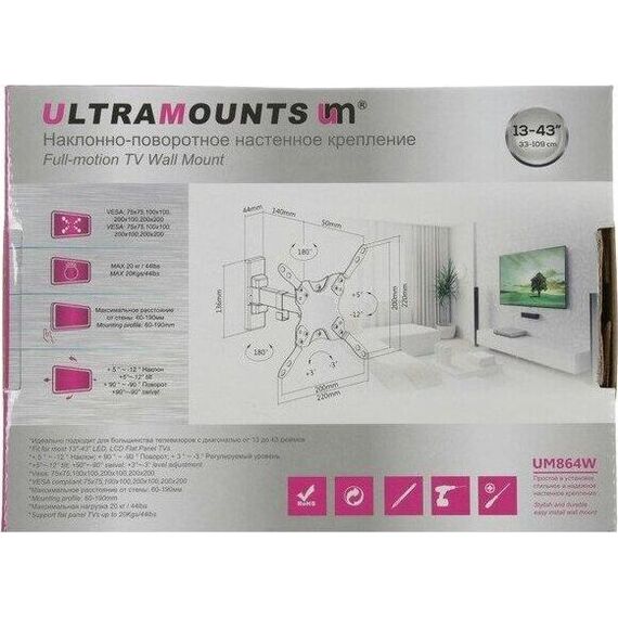 Кронштейн ULTRAMOUNTS UM864W для 13-43" белый
