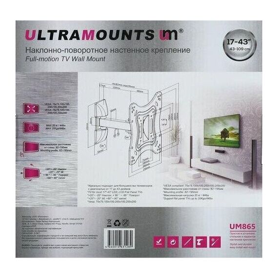 Кронштейн ULTRAMOUNTS UM865 для 17-43" черный