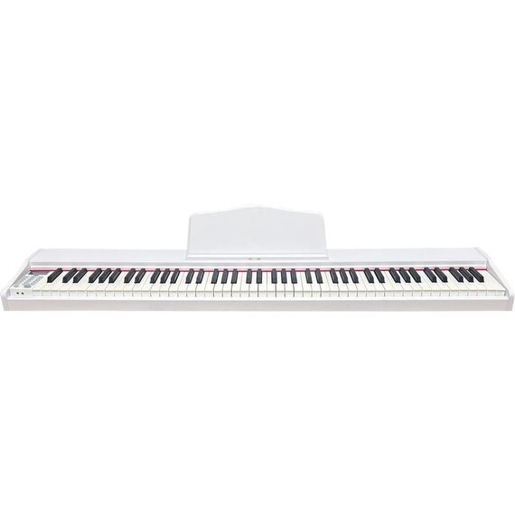 Цифровое профессиональное пианино, Цвет белый, 88 полноразмерных полувзвешенных клавиш, Корпус из МДФ, Полифония 32 голоса, 880 тембров / 600 ритмов, 80 Демокомпозиций, Функция записи и воспроизведения, метроном, Цифровой дисплей, USB порт, Аудиовход/аудиовыход, два разъема для наушников, разъем для подключения педали, Педаль в комплекте, Источник питания: 15В, 3А, Габариты 143x32.5x18 (cм)