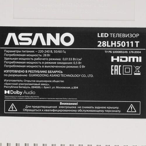Телевизор LCD 28" HD WHITE SALUT SMART 28LH5011T ASANO