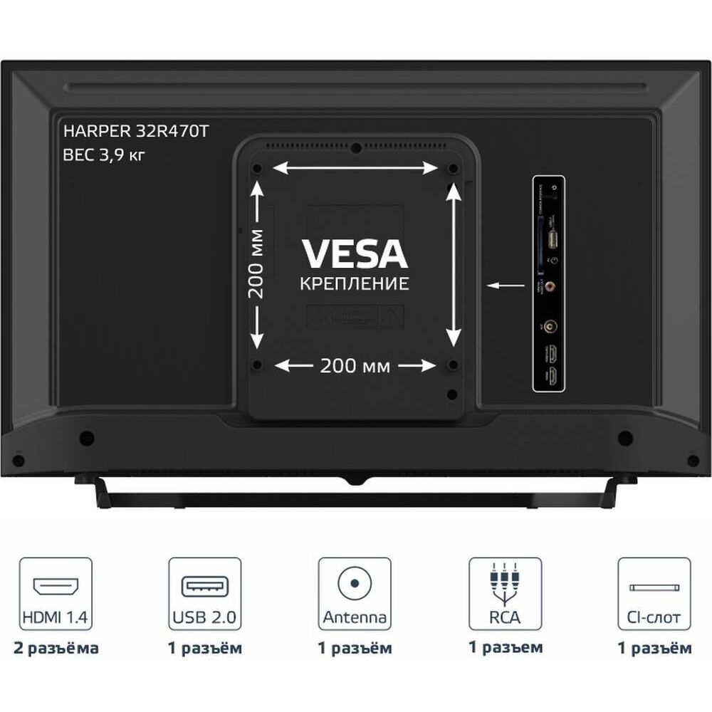 32" (81см),HD READY 1366x768, цифровой тюнер DVB-T2/DVB-C/S2 ,(.H.264/MPEG4/2/1/VC1/DivX),Запись ТВ программ , Электронный Телегид, Отложенный просмотр; слот CI+ для модуля условного доступа, формат экрана: 16: 9, Авто динамическая контрастность: 70000: 1 , яркость: 230 кд/м2, угол обзора (Г/В): 178°/178°, время отклика: 8 мс, Частота обновления экрана - 50Гц, 3D цифровой фильтр, русское, английское меню, телетекст, аудио: 2х6 Вт, входы: антенный ,разъемы для подключения: USB, 2 HDMI, копмозитный AV, компонентный YPbPr, Ethernet порт для подключения к локальной или глобальной сети RJ45, VGA, HDMI,ПК аудио,SCART вход,SPDIF, вход для наушников, вход CI+ (common interface), вход для антенны