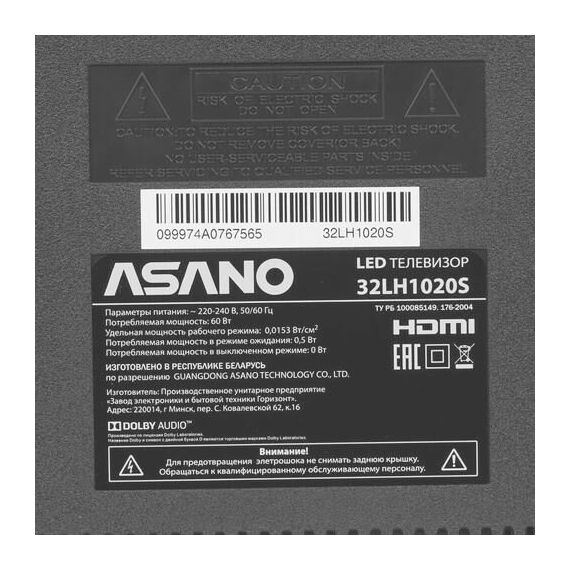 Телевизор LCD 32" HD 32LH1020S ASANO