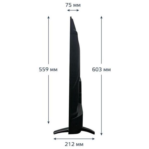 Телевизор.43" (109см)/ FULL HD 1920x1080/ SMART TV (Frameless AOSP 11 1RAM + 8Gb ROM) / цифровой тюнер DVB-T2/DVB-C/ Запись ТВ программ / Электронный Телегид/ Отложенный просмотр; слот CI+ для модуля условного доступа/ формат экрана: 16: 9/4: 3/auto/ Авто динамическая контрастность: 90000: 1 / Количество цветов 16,7 млн../ яркость: 250 кд/м2/ угол обзора (Г/В): 178°/178°/ время отклика: 8 мс/ Частота обновления экрана - 60Гц/ 3D цифровой фильтр/ ARM cortex –A55 quad core 1,1 GHz, Mail 470*3 600 MHz ( Оперативная память 1 Gb, Внутреняя память 8G) VESA 200 X 200 / русское; английское меню/ телетекст/ Внутреняя память 8G) входы: антенный /разъемы для подключения: 1 USB/ 3 HDMI/ Разъем для наушников jack 3,5 / Цифровой аудио выход /вход CI+ (common interface) / Встроенная акустика 16 Вт (2x8 Вт)