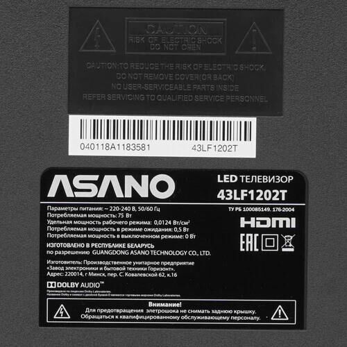 Телевизор LCD 43" FHD 43LF1202T ASANO
