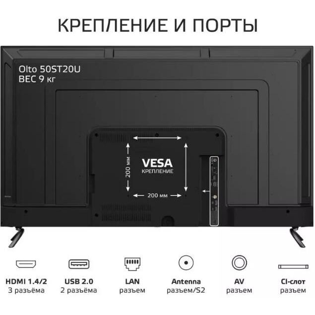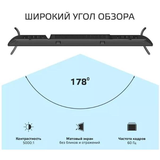 Разрешение: 3840х2160 Тип подсветки экрана: Direct LED Формат экрана: 16:9 Процессор: ARM Cortex-A53 Оперативная память: 2 Гб Внутренняя память: 16 Гб Операционная система: Android 11 Цветовой фильтр: RGB Углы обзора: 178° Частота обновления экрана: 60 Гц Время отклика пикселя: 8 мс. Яркость: 250 Кд/м2 Контрастность: 5000:1 Количество цветов: 1,07 млрд. Дополнительно: Матовый экран без бликов и отражений Дизайн рамки: Безрамочный дизайн рамки Функция HDR: да Поддержка PAL: да Поддержка SECAM: да Поддержка NTSC: да Встроенная акустика: 16 Вт (2x8 Вт) Декодер стереозвука NICAM/A2: да Объемное звучание: да Dolby audio: да Стереозвук: да Поддержка видеоформатов/кодеков: MPEG2, MPEG4, AVI, Xvid, FLV, MOV, VOB, MKV, HEVC Поддержка аудиоформатов/кодеков: AC3, EAC3, MP3, WMA Поддержка форматов изображений: JPEG, BMP, PNG Антенный вход: да Версия HDMI: 1.4/2 Разъемов HDMI: 3 Количество разъемов USB 2.0: 2 Разъем для наушников: да Композитный аудио/видео вход: Композитный AV mini