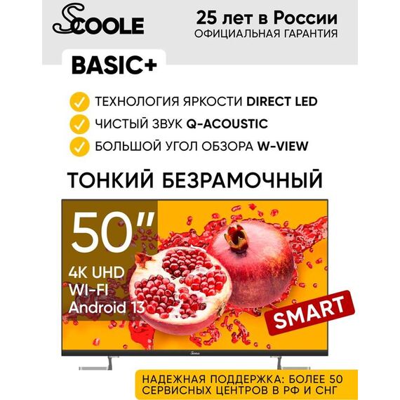 Телевизор SCOOLE SL-LED50S02T2SU UHD SMART TV безрамочный