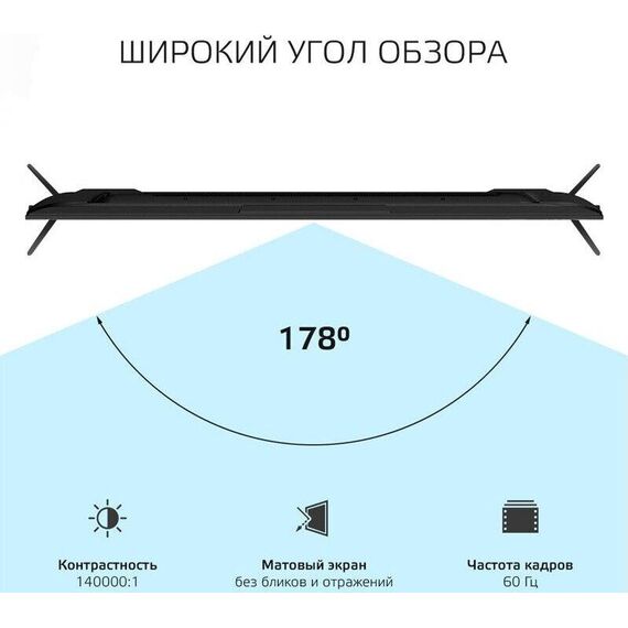 65" (164 см) UHD Frameless Official google Frameless AOSP Android 11. 2RAM + 16Gb ROM Системы цветности аналогового ТВ: SECAM, PAL Системы цветности для AV: NTSC, PAL Цифровой тюнер DVB-TП2/C/S2 SMARTTV Wi-Fi Декодеры стереозвука NICAM, А2, АСЗ Формат изображения: 16: 9 Разрешение экрана 3840х2160 Динамический контраст 200000: 1 Яркость 330 кд/м2 Угол обзора (гор/верт) 178°/178° Цифровой 3D фильтр Количество цветов 1 млрд. Время отклика 8 мс Меню на русском, английском языках Телетекст Аудио 2х 10Вт