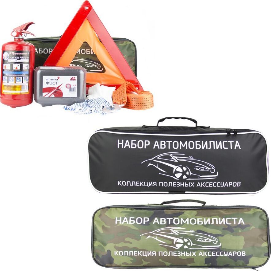 Набор автомобилиста необходим в каждом автомобиле. Содержит компоненты соответствующие Федеральному закону "О техническом осмотре транспортных средств". Предмет первой необходимости в случае ДТП. В комплекте: - огнетушитель порошковый ОП-2; - знак аварийной остановки в футляре; - аптечка; - трос буксировочный из полипропилена 4,8 м/5т; - перчатки х/б с напылением.