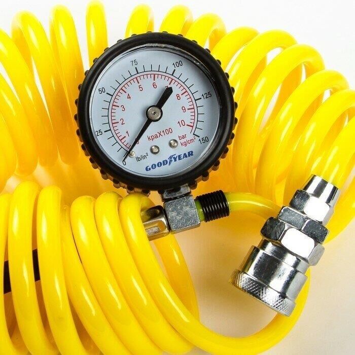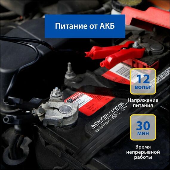 Воздушный компрессор Goodyear GY-40L 40 л/мин со съемной ручкой, съемный витой шланг, сумка для хранения Воздушный компрессор Goodyear GY-40L 40 л/мин GY000111 предназначен для быстрого накачивания автомобильных и велосипедных шин, колес OFF-ROAD техники, а также мячей, резиновых лодок, матрасов. Агрегат оснащен аналоговым манометром с погрешностью измерений до 5%. Питание компрессора может осуществляться как напрямую от АКБ автомобиля, так и от клемм прикуривателя. Компрессор подходит для шин R13-R17. Технические характеристики Goodyear GY-40L GY000111 Напряжение, В 12 Тип двигателя электрический Производительность на входе, л/мин 40 Объем ресивера, л нет Транспортировочные колеса нет Частотный преобразователь нет Тип компрессора автокомпрессор Max давление, атм 10 Наличие фонаря нет Защита от перегрева да Автономная работа нет Манометр аналоговый Время непрерывной работы, мин 30 Вес, кг 1,8 Тип поршневой Подключение к клеммам аккумуля