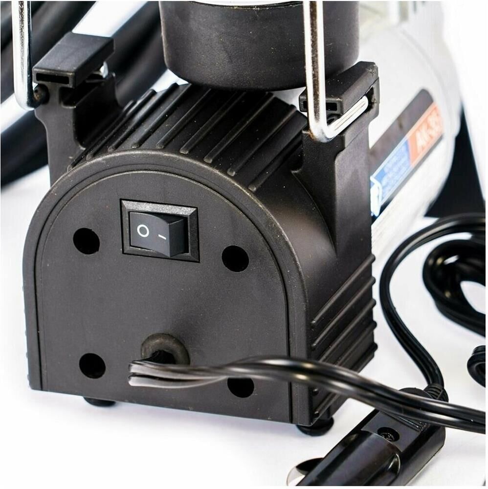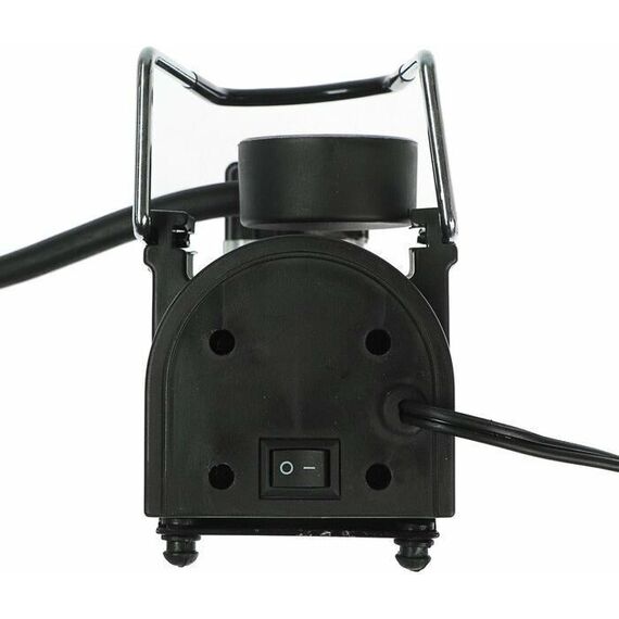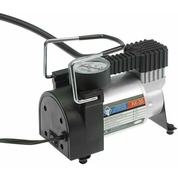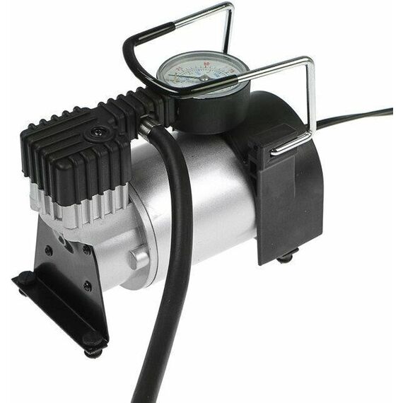 Мощность – 150 Вт. Максимальная сила тока – 15 А. Максимальное давление – до 10 кг/см2 (140PSI/10Bar) Производительность – до 35 л/мин. Шнур питания – 2,7 м. Воздушный шланг – 1м. Пластиковый кейс Питание от гнезда прикуривателя Встроенный в штекер питания предохранитель Комплект насадок-переходников – 3 шт. Цвет- серебро Напряжение питания — 12В. Состав: металл, пластик