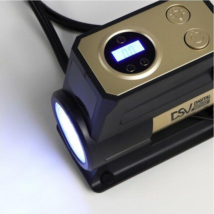 Автокомпрессор DSV (224000) Smart, усиленный с LED фонарем 45 л/мин 12В с цифр. маном, сумкой , золотой