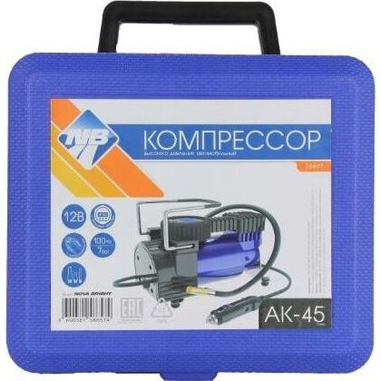 Автокомпрессор NOVA BRIGHT АК-45 металлический корпус, пластиковый кейс 36449