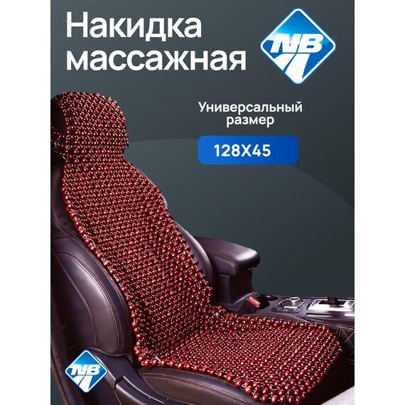 Накидка на сидение NOVA BRIGHT массажная с подголовником (деревянная, покрытая темным лаком) (128х45см) 47699