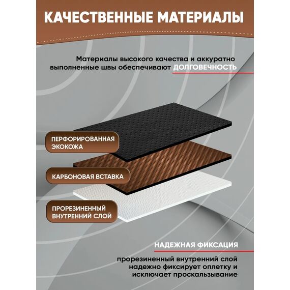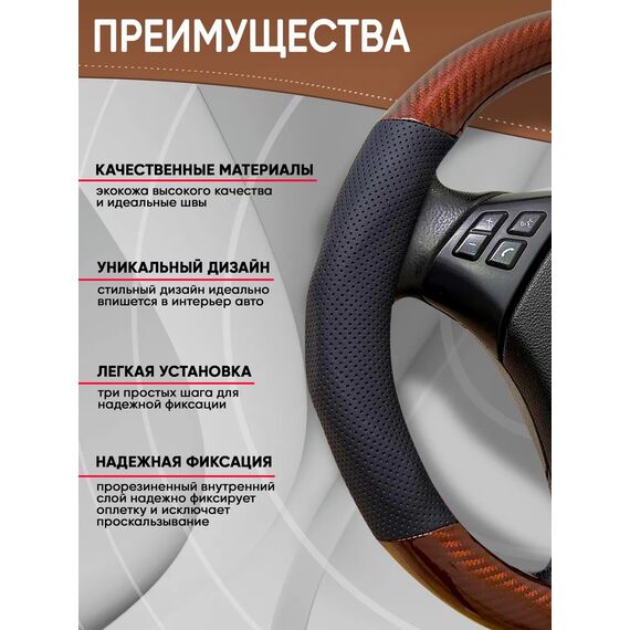 Если вы ищете классическую кожаную накладку с натуральными материалами – эта оплетка станет идеальным выбором. Карбоновая отделка добавляет нотку спортивного стиля вашему бизнес авто.