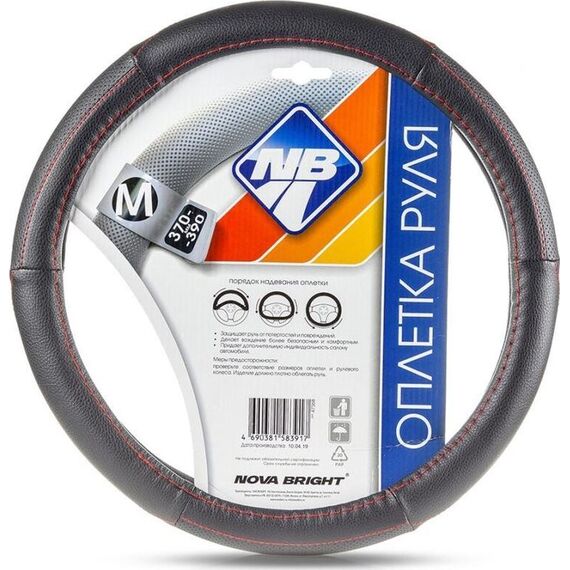 Оплетка на руль NOVA BRIGHT (M) экокожа, черная с перфорированными черными вставками и красной прострочкой 47368