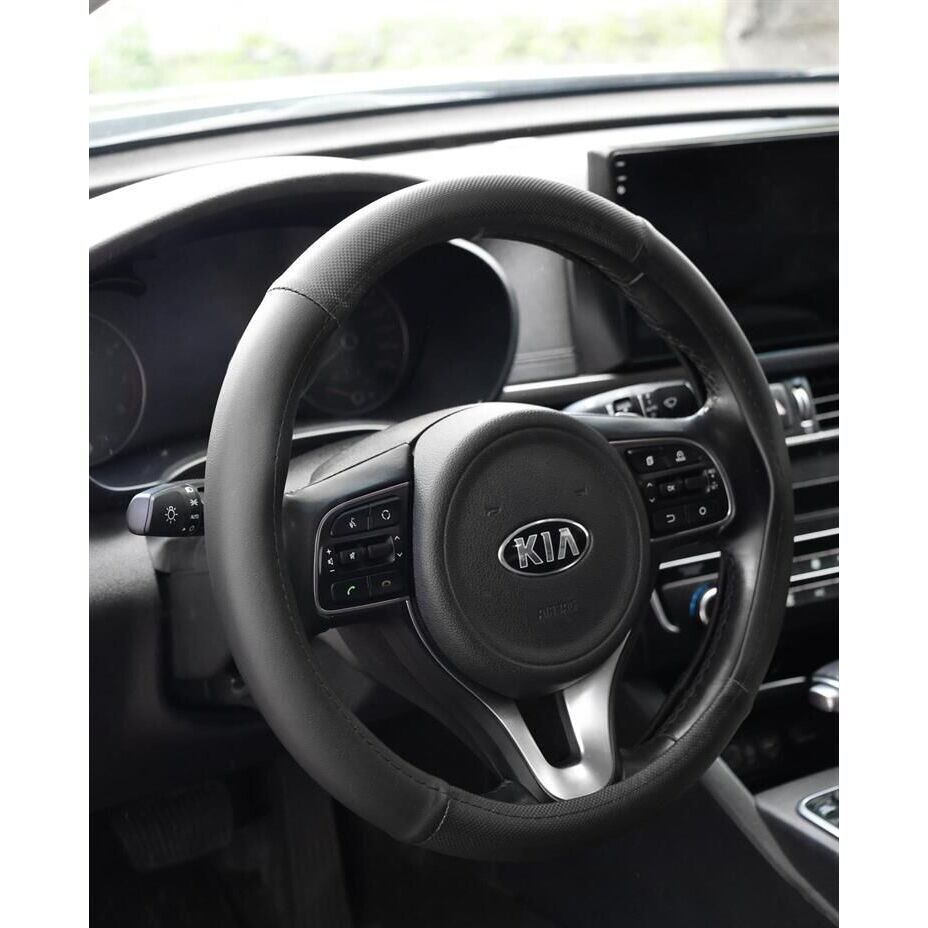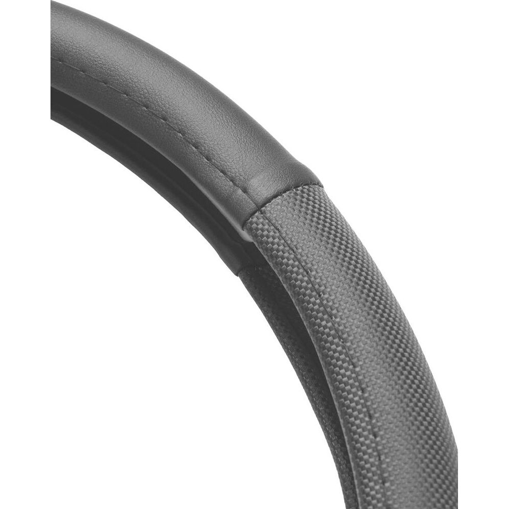 Оплетка на руль STVOL SWP05 комб. экокожа, карбон - гладкая, М размер, черный