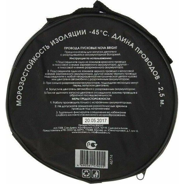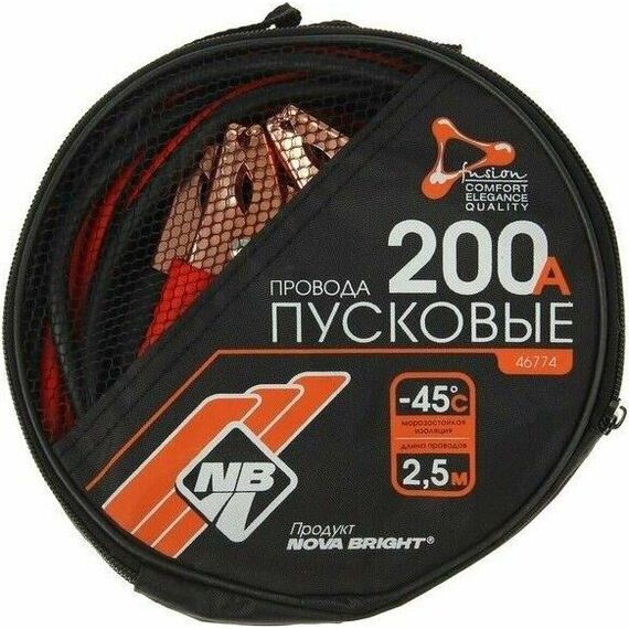 Провода пусковые NOVA BRIGHT-FUSION 200А морозостойкие, в сумке, 2.5м 46774