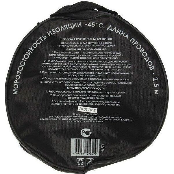 Провода пусковые NOVA BRIGHT-FUSION 400А морозостойкие, в сумке, 2.5м 46776