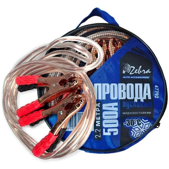 Провода пусковые ZEBRA 500А с прозрачной изоляцией, в сумке, 2.2 м 47792