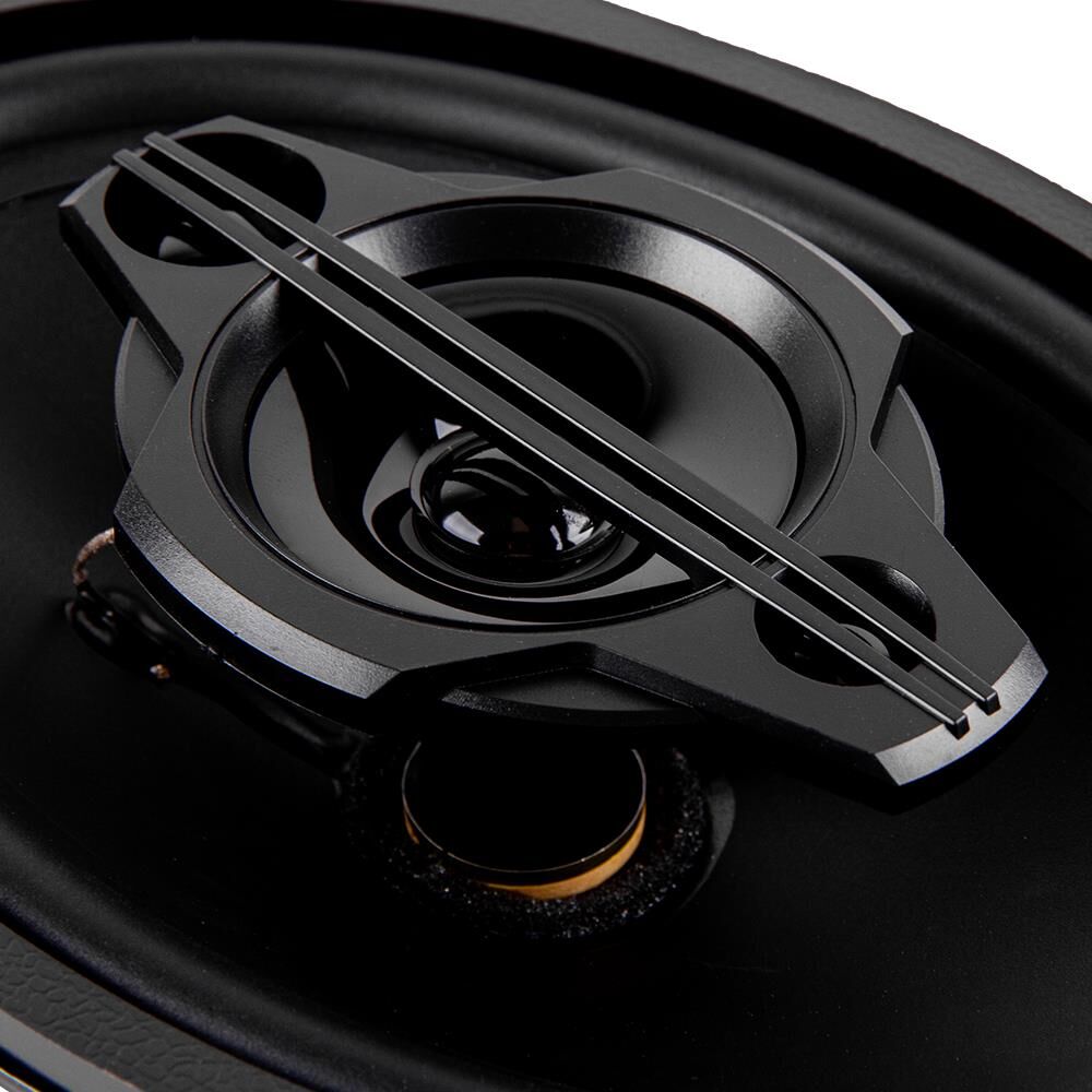 Пиковая мощность: 240 Вт Номинальная мощность: 80 Вт Чувствительность: 88 дБ/Вт/м Импеданс: 4 Ом Особенности модели Звуковая катушка: ASV 25 мм Диффузор: Чёрный полипропиленовый диффузор (литё под давлением) с прорезиненным подвесом Магнит: 15 унций (90х15 мм) Диапазон частот: 65Гц ~ 20000Гц Общие характеристики Количество полос: 3-полосная Размер акустики: 6х9" (15x22,5 см) Корзина: Стальная корзина Диапазон рабочих температур: -35 ~ +55 °С Твитер: Майларовый пьезо твитер 58 мм Внутри динамиков ферритовые магниты по 15 унций и звуковые катушки с обмоткой из проволоки с медным покрытием. Высокочастотники качественно передают верхний диапазон, который органично сливается с общим звучанием системы и делает его более совершенным. Компоненты динамиков помещены в металлические штампованные корзины с отверстиями с обратной стороны для лучшей звуковой отдачи.