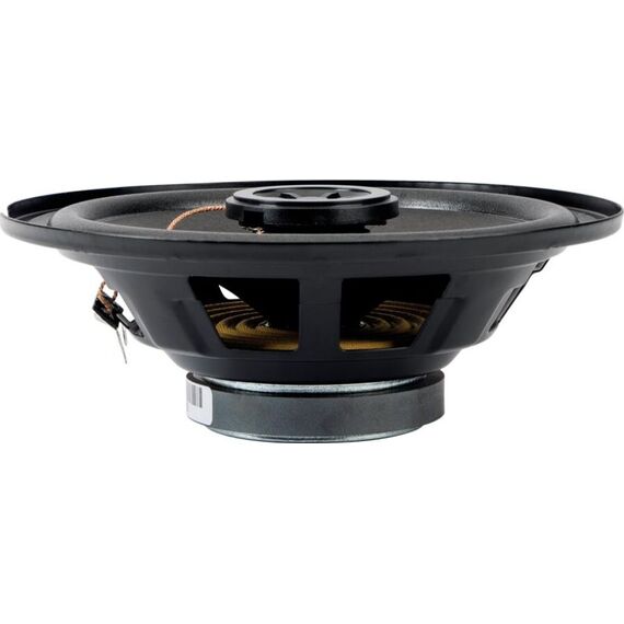Акустическая система. Коаксиальная, 2-х полосная. Полипропиленовый диффузор (литьё под давлением) с прорезиненным подвесом. Стальная корзина. Номинальный диаметр: 6" (16 см). Номинальная мощность: 61 Вт Максимальная мощность: 121 Вт Диапазон частот: 80 Гц - 20 кГц Чувствительность: 89 дБ Сопротивление: 4 Ом Вес магнита: 5.3 Oz (150 гр.) Монтажная глубина: 54 мм