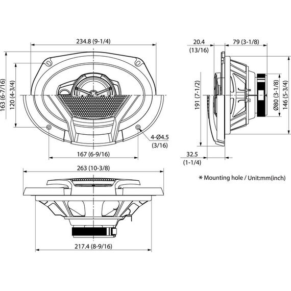 Тип акустической системы коаксиальные Количество колонок в комплекте две Количество частотных полос трехполосные Форма динамиков овальная Размер динамика 15x23 см (6x9 дюйм.) Номинальная мощность 70 Вт Максимальная мощность 500 Вт Частотный диапазон от 58 Гц до 21 кГц Чувствительность 88 дБ Импеданс 4 Ом Магнит ВЧ динамика ферритовый Магнит НЧ динамика ферритовый