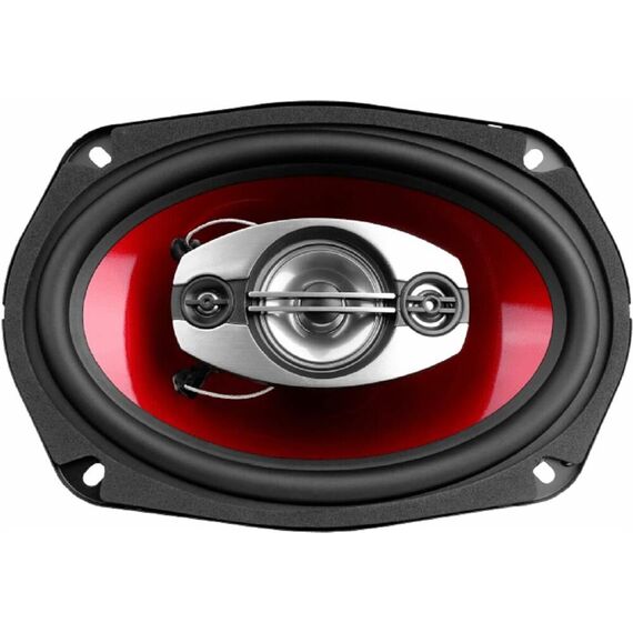 16,5х23,5 см (6х9"), 4-х полос., 52-22 000 Гц, 93 дБ, 200 Вт, 4 Ом. коаксиальная овальная акустика предназначена для установки в акустическую полку или акустические короба закрытого типа, обладает объемным и бархатным басом за счет большой площади диффузора. Нч-диффузор инжекционного литья с гальваническим покрытием «Electroplating» с износостойким бутилкаучуковым подвесом. 3-х полосный твитер с расширенным диапазоном воспроизведения высоких частот. Установочная глубина, мм 83 Диаметр монтажного отверстия, мм 153x222