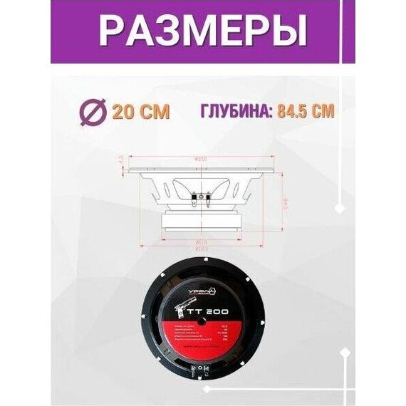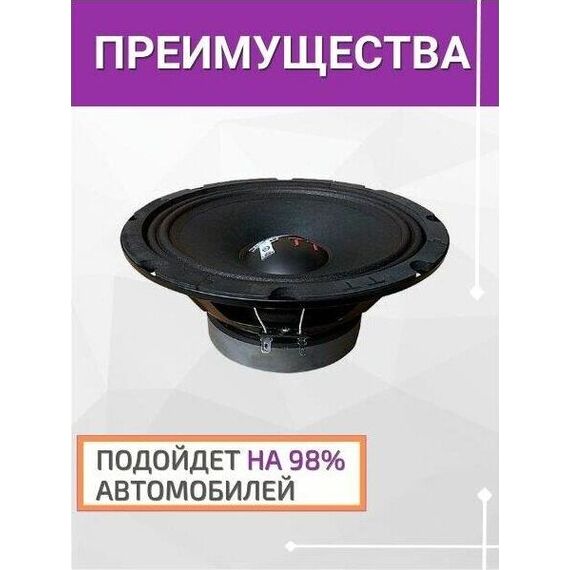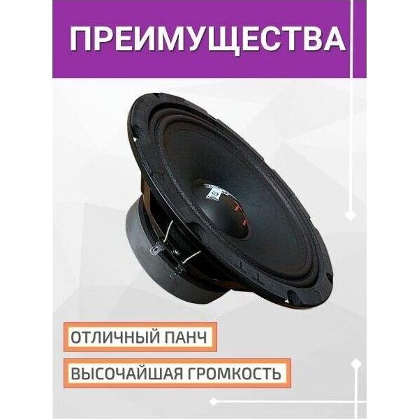208 мм (8") Мощность номинальная, Вт 130 Мощность максимальная, Вт 260 Частотный диапазон, Гц 90-10000 Чувствительность, дБ 96 Сопротивление, Ом 4 Звуковая катушка, дюймы 1 Мощная магнитная система. Экстремальный уровень громкости (даже от усилителей с небольшой мощностью, в т.ч. от встроенных усилителей автомобильных магнитол). Широкий диапазон звучания
