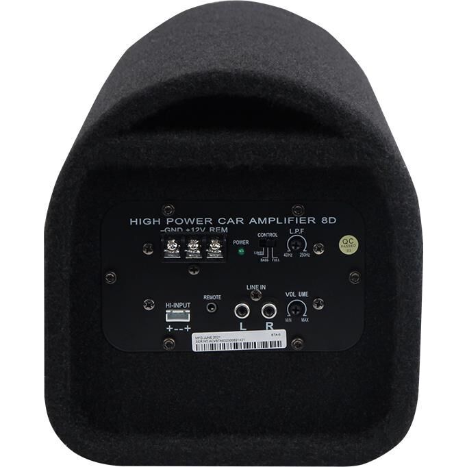 Пиковая мощность: 300 Вт Номинальная мощность: 75 Вт Чувствительность: 86+2 дБ Импеданс: 4 Ом (одна катушка) Особенности модели Звуковая катушка: 1.2" (30,6 мм), 3,2Ом SPL: 104±2 дБ / 70Вт на расстоянии 1м Диффузор: Прессованная бумага Материал подвеса: Резина Магнит: 20 унций Диапазон частот: 35 - 250Гц Дополнительно: Выносной Бас буст Общие характеристики Тип корпуса: Труба Типоразмер сабвуфера: 6,5" (16,51 см) Корпус: Фазоинверторный корпус со встроенным усилителем класса АВ Размеры: 400х190х212 мм