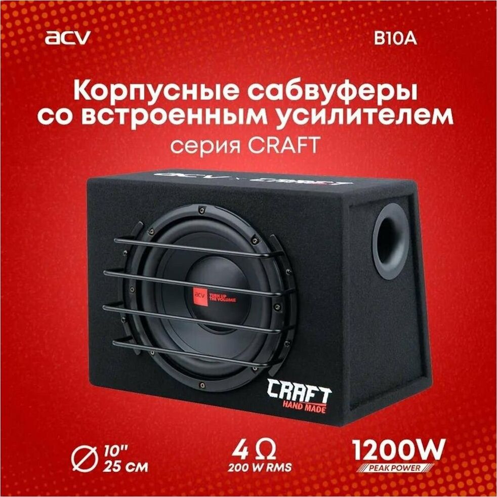 Автосабвуфер ACV CRAFT B10A активный/корпусной/1200Вт/25см/SPL-110дБ