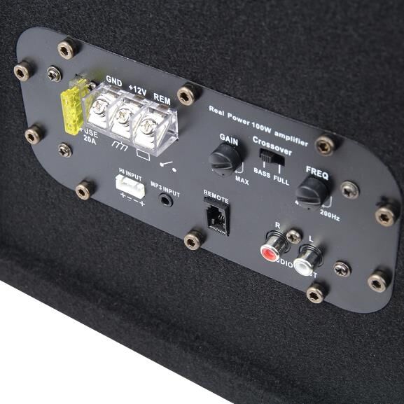 Пиковая мощность: 1200 Вт Номинальная мощность: 200 Вт Чувствительность: 86 ± 2 дБ Импеданс: 4 Ом (одна катушка) Особенности модели Звуковая катушка: 1,5" (38мм), 3.7 Ом SPL: 107±2 дБ / 100 Вт на расстоянии 1м Диффузор: Бумажный диффузор Материал подвеса: Резина Магнит: 35 унций Диапазон частот: 38-250 Гц Общие характеристики Тип корпуса: Трапеция Размер сабвуфера: 10" (25 см) Корпус: Фазоинверторный корпус со встроенным усилителем класса АВ Размеры: 440х(218+270)х315 мм