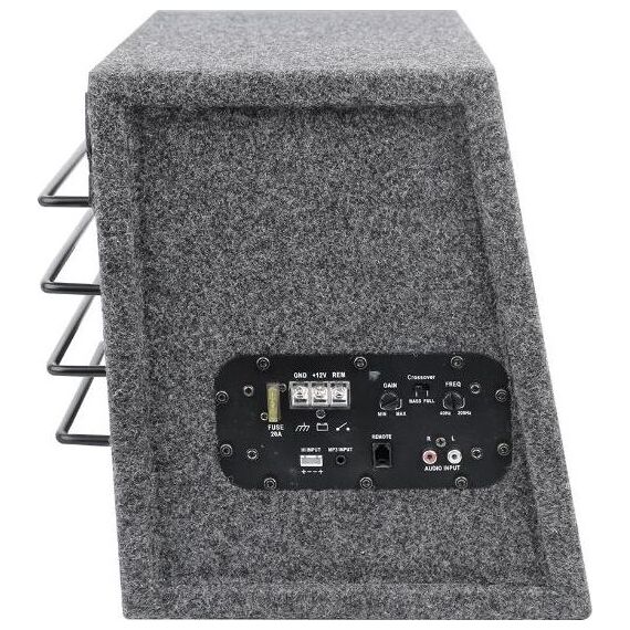 Пиковая мощность: 1200 Вт Номинальная мощность: 200 Вт Чувствительность: 86 ± 2 дБ Импеданс: 4 Ом (одна катушка) Особенности модели Звуковая катушка: 1,5" (38мм), 3.7 Ом SPL: 107±2 дБ / 100 Вт на расстоянии 1м Диффузор: Бумажный диффузор Материал подвеса: Резина Магнит: 35 унций Диапазон частот: 38-250 Гц Общие характеристики Тип корпуса: Трапеция Размер сабвуфера: 10" (25 см) Корпус: Фазоинверторный корпус со встроенным усилителем класса АВ Размеры: 440х(218+270)х315 мм