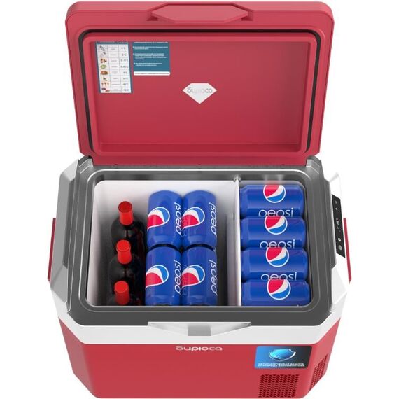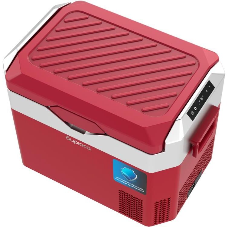 Автохолодильник компрессорный; Цвет Бордовый; Сенсорный LED дисплей; Температура в режиме морозильника: от -18 до 0 °C; Температура в режиме холодильника: от 0 до +15 °C; Работа от сети/прикуривателя автомобиля/аккумулятора; Температура отображается в градусах Цельсия, Фаренгейта; Адаптер 12/24/220В в комплекте; Возможность выбора уровня защиты разряда аккумулятора машины; Разделочная доска в комплекте; Режим быстрого охлаждения; Режим экономии энергии; Габариты: 41,2х55,8х36,2см; Объем: 30л