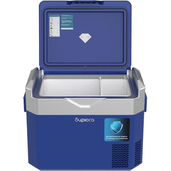 Автохолодильник компрессорный; Цвет: Темно-синий; Сенсорный LED дисплей; Температура в режиме морозильника: от -18 до 0 °C; Температура в режиме холодильника: от 0 до +15 °C; Работа от сети/прикуривателя автомобиля/аккумулятора; Температура отображается в градусах Цельсия, Фаренгейта; Адаптер 12/24/220В в комплекте; Возможность выбора уровня защиты разряда аккумулятора машины; Разделочная доска в комплекте; Режим быстрого охлаждения; Режим экономии энергии; Габариты 41,2х55,8х36,2см; Объем: 30л