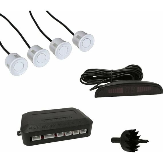 Комбинированные парктроники, цвет белый. Размер 22х18х5 см Диаметр установочного отверстия 22мм. LED-индикатор графическая и цифровая индикация звуковое оповещение шаг измерения расстояния: 0,1м точная дальость обнаружения: от 200 до 30 см диаметр: 22 мм напряжение: 12 в