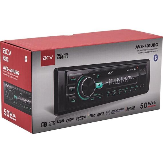 Автомагнитола ACV AVS-401UBG (1din/База 36мм/зеленая/Bluetooth/USB/TYPE-C/AUX/SD/FM/4*50)